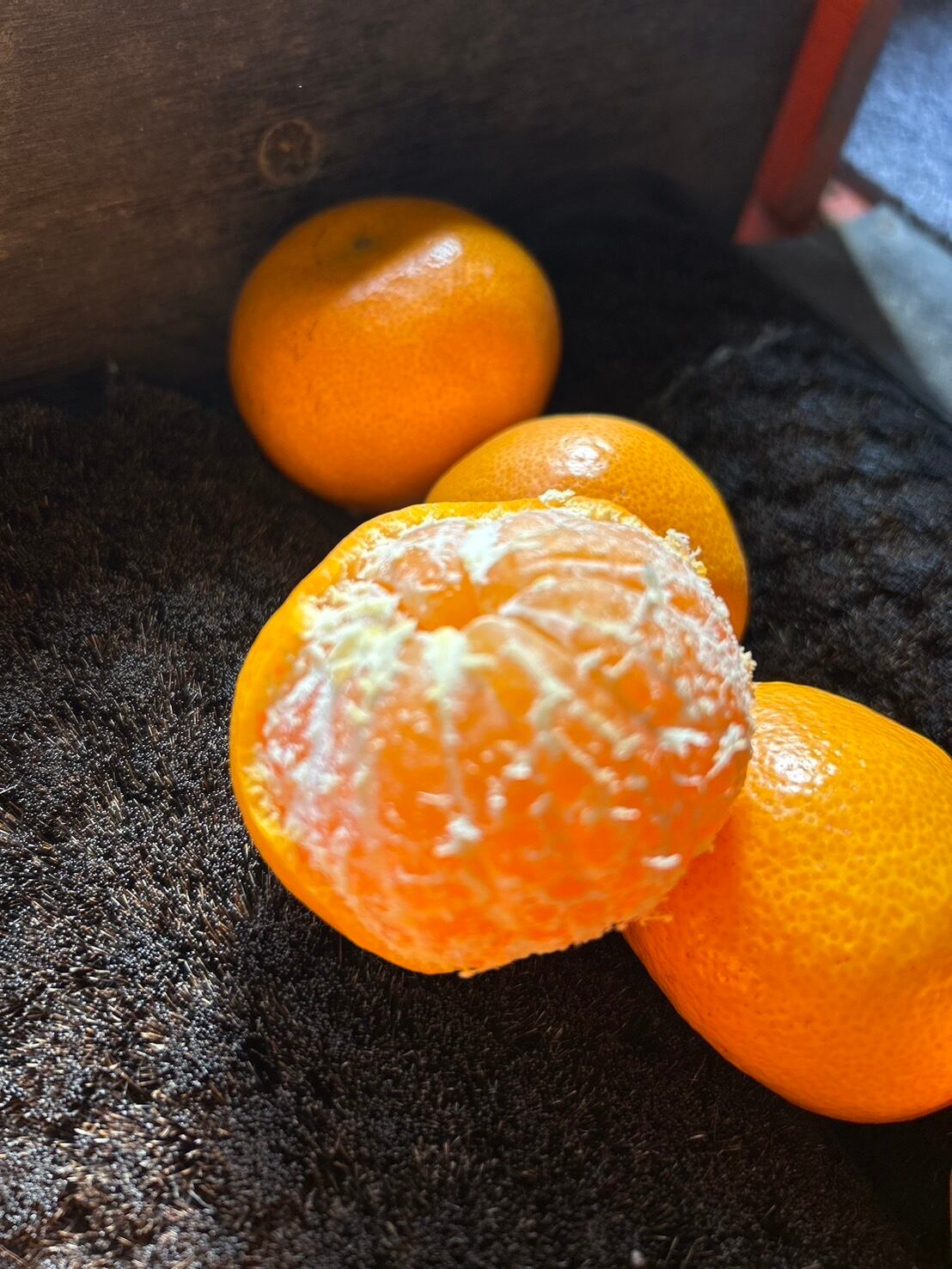 収穫時期を遅らせて樹上で熟成させているみかんです。